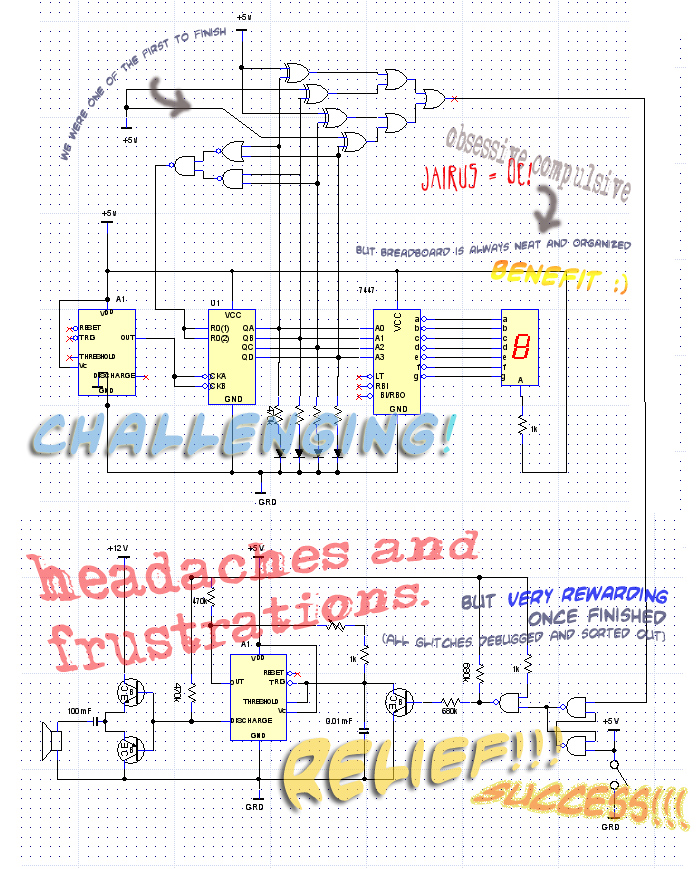 poking through the colorful mix of wires, ICs, and LEDs gives