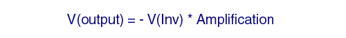 The output of an operational amplifier reflects the difference in voltage between the inverting (Inv) and the non-inverting (NInv) inputs. A typical operational amplifier of the 741-type is able to amplify the voltage difference by about 200,000 times. This very high native amplification allows the user to control the behavior for a specific amplification by adding a "feedback resistance" R(f) in combination with an "input resistance" R(i) to provide specific amplification values from ZERO to its maximum.