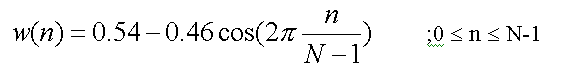 Due to these equations, the Rectangular window have greater frequency resolution but has very high undesirable frequency leakage. On the other hand, the Hamming window has lesser frequency resolution but has very low leakage. Thus, rectangular windows are not recommended for speech spectral analysis. So in our project, the windowing technique used is the Hamming.